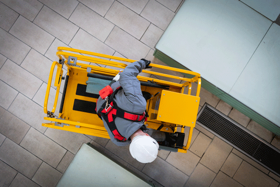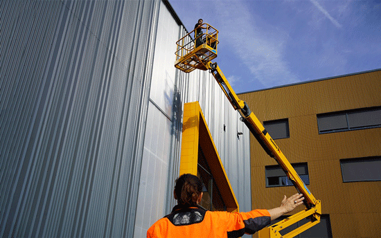 Em locais com obstáculos elevados, uma plataforma articulada oferece maior flexibilidade para alcançar áreas ao redor de estruturas ou objetos.